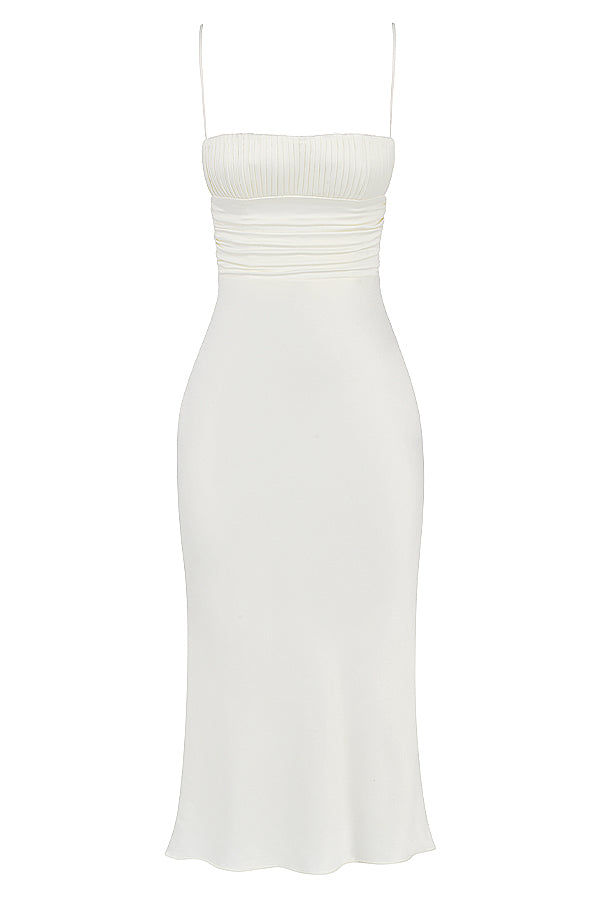 Ivoorkleurige satijnen korset midi-jurk